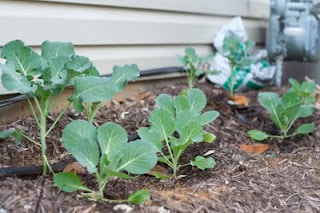 Sunday afternoon was a gorgeous day, couldn't have asked for a nicer fall day, the sun was out, but it was nice and cool due to the breeze. So while the kids were napping I got outside and removed more of the tomato plants that are done for the season, and transplanted the rest of the fall plants that I still had in my seed starting shelves. The transplants consisted of two more Brussels Sprouts, Broccoli, and Cabbage. The ones that I had transplanted already are looking good for the most part. A few are being attacked by some leaf eating pest, but the ones along the east side of the house seem to be taking off pretty well.