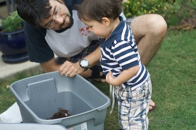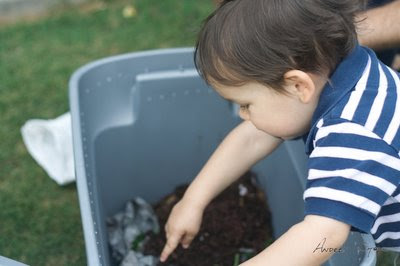 On Wednesday our shipment of a pound of worms (approximately 500 worms) arrived. How exciting. Antonio was all oo's and ah's, but did not want to try to touch them. So our worms are now happily in their new home (or at least we hope), in our home-made compost bin. I am excited to finally start composting our kitchen scraps and producing our very own fertilizer. One step closer to closing the loop and being more self sufficient at our little homestead..jpg)