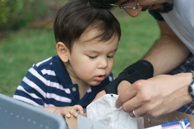 On Wednesday our shipment of a pound of worms (approximately 500 worms) arrived. How exciting. Antonio was all oo's and ah's, but did not want to try to touch them. So our worms are now happily in their new home (or at least we hope), in our home-made compost bin. I am excited to finally start composting our kitchen scraps and producing our very own fertilizer. One step closer to closing the loop and being more self sufficient at our little homestead..jpg)