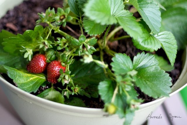 Last weekend Antonio and I bought ourselves a few plants for our garden. Some of the plants we bought were a Strawberry plant, that had two strawberries ready for picking already on it, Lemon Thyme, and Stevia. Julia and I decided to give Stevia a try (although we grew it once years before, we didn't do anything with it then). We plan on possibly using it instead of sugar when possible. It can be done with either the green leaves, or by drying and then grinding the leaves into a powder (if we have enough, we may plan on doing both). Approximately 6 large leaves chopped finely is a substitute for 1/2 cup of sugar for baking or in cooked recipes. 1 teaspoon of ground stevia is equal to 1 cup of sugar; 2 drops of liquid essence is equal to 1 teaspoon sugar. Antonio and I also picked up a Citronella Scented Geranium, we'll see if it works in keeping the mosquito population away from our patio some. Here is a picture of one of our two blueberry bushes at the end of April.