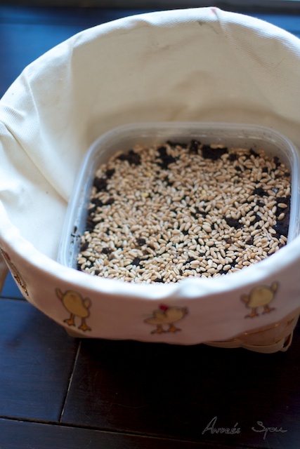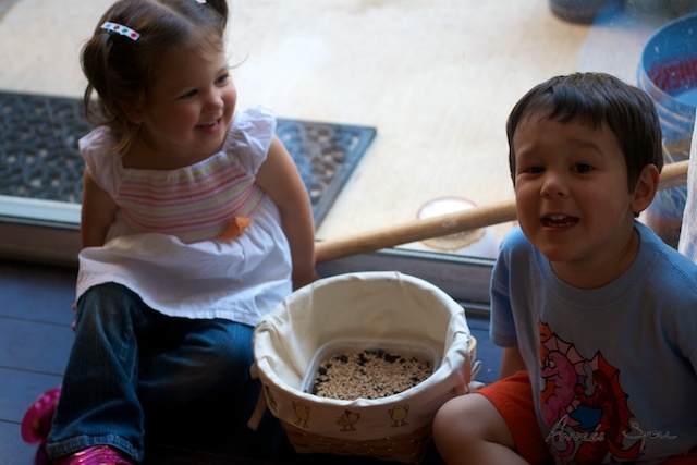 I had been wanting to try to grow our own "Easter Grass" for the past two years, and finally I am doing it this year. The reasons for doing so, are that we can not stand the fake plastic grass that gets everywhere, and want a more sustainable natural method of decorating the kid's Easter baskets. They were very excited to grow grass for their baskets, and helped fill the little tray with soil and put down a layer of wheat berries and then sprinkle them with water. We currently have a 5 gallon bin of wheat that we intend to grind into flour, so I was able to steal a few handfuls to use for the Easter baskets. Below is picture of the wheat six days later.