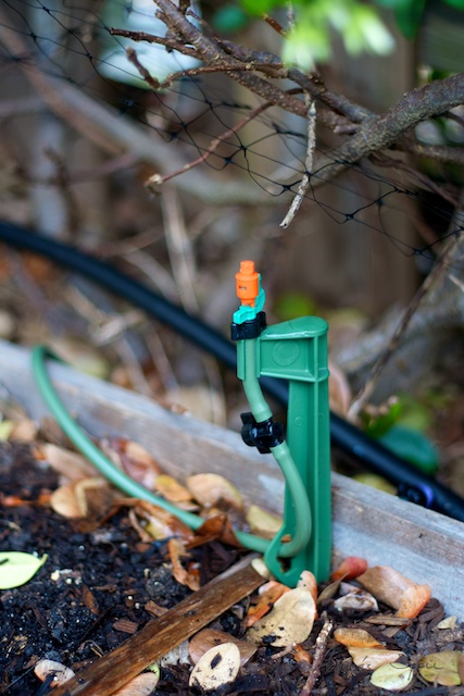 This spring I decided to expand my irrigation system with a micro sprinkler system. It is by the same brand as the drip irrigation system that I installed last year for my potted plants in my patio, and connects to the timer. For the last few years I had been using a soaker hose for the non-potted plants, but been having to replace the hoses pretty much every year. So when I was going to buy a new one for this year, I started looked at other options, as the base system for the micro sprinklers is slightly more than twice as much than the soaker hose, I decided to try it, with the thought that this will last me much longer than the soaker hoses had been, and will be cost effective in the long run. I have been happy with the level of control that this gives me. I can adjust the amount of water getting to different plants in ways that the soaker hose never allowed. We'll see how it does in the heat of the summer.