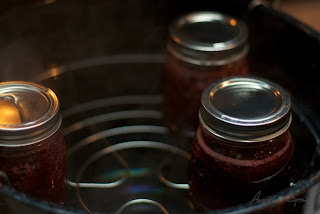 She then got out our canning pot, and boiled the jars and filled them, so that they stand ready for our later enjoyment.