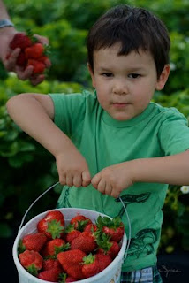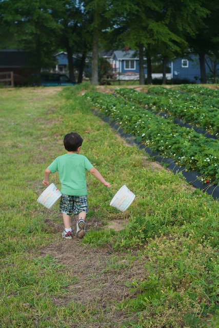 The other week after work we all went out to a local farm to pick strawberries. We had a blast, the kids loved finding the plump read strawberries that asking to be picked. It is surprising haw fast we were able to collect 3 gallons worth with their help. We plan on eating some fresh, making strawberry jam, and then freezing the rest. Last year the strawberry jam Julia preserved allowed us to go the whole year without having to purchase any jam or jelly, it was great knowing that our whole year supply was homemade!