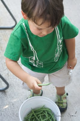 Thursday evening Antonio, Julia Belén and I went out into the garden and decided it was time to really start picking the green beans. So I got out a bucket and Antonio started picking green beans and ended up picking 7.8 ounces worth of green beans. I grilled some of the green beans in Spanish olive oil and kosher salt, it came out delicious.