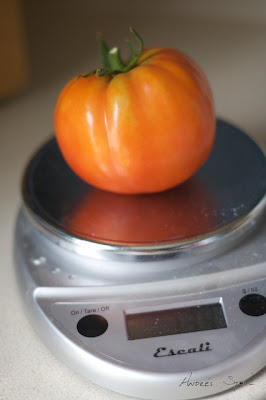 Today we harvested our first tomato from our "Homestead" variety. A nice 7+ ounce tomato.